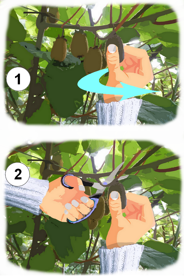 À l’aide d’un ciseau, coupez le pédoncule au-dessus du fruit. Vous gardez ainsi une partie du pédoncule attaché au kiwi. 2