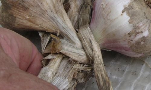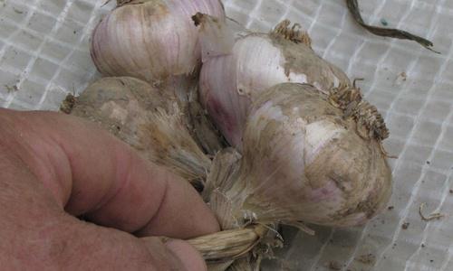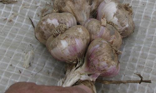 Après avoir débarrassé les têtes d’ail d’un maximum de terre, coupez les radicelles sèches.