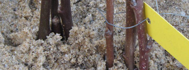 Évitez de prélever des gourmands, mais plutôt des rameaux " poussant " d'un an, trapus, dont les yeux ne sont pas trop espacés.
