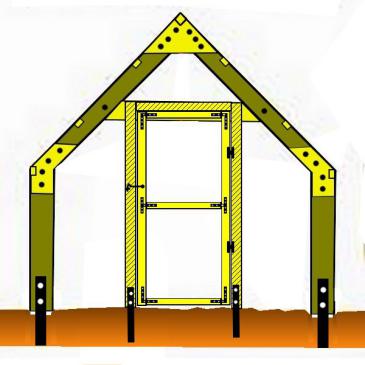 La largeur de la porte devra permettre le passage d'une brouette. Faites le cadre de la porte comme sur le plan en le fixant pour la partie haute sur l'entrefait haut(4)(e) et pour la partie basse boulonnée à des fers plats fichés dans le sol. Section 40x 40 mm.