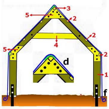 Vous pouvez pour éviter le frottement de la bâche sur les angles de la construction y agrafer des bandes de moquette(voir plan).