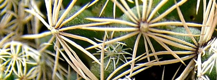 Coryphantha pallida , globe de 10-12 cm de diamètre vert bleuâtre. La base des tubercules est ouatée. les aiguillons sont blancs et quelques un noirâtres au centre de chaque disposition. les fleurs jaunes de 5-7 cm de diamètre.