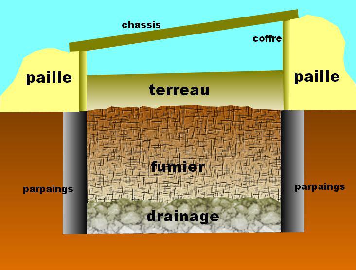Elle est constituée de débris végétaux et de fumier (c’est le fumier de cheval qui apportera le plus de chaleur)