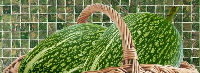 Les fruits verts sont marqués de lignes vert pâle à crème et tachetés de la même couleur.