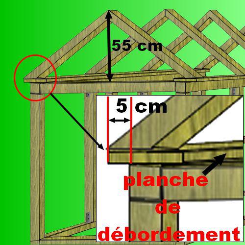 *posez sur les cotés latéraux des planches de débordement (voir dessin) en les faisant dépasser de 5 à 6 cm.