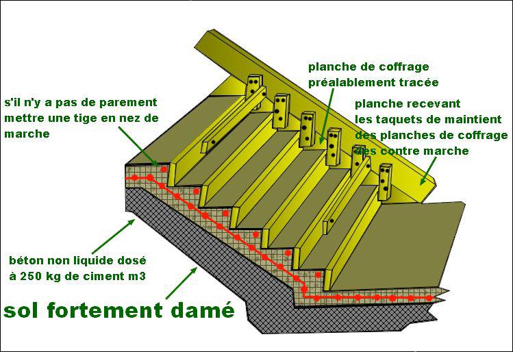 * Vous procéderez (comme il est dit plus haut) au remplissage du coffrage en commençant par la première marche et continuez les autres en tassant le béton.