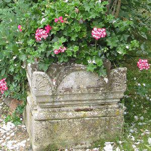Ici tout est en devenir, le « laisser-aller » n’est qu’apparent, les pieds de tomates peuvent se trouver au milieu de calendulas ! Une statue, au pied envahi de lierre, représentant le saint du village appelle le visiteur à la méditation. Çà et là, des jardinières taillées dans la pierre sont plantées de succulentes. Les allées gravillonnées cheminent vers des bancs de bois verdis, lieux de repos et de contemplation.