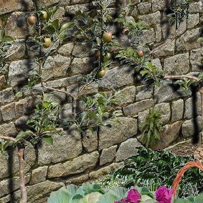 Les arbres fruitiers sont conduits en double u et fixés au mur sur des rangs de fil de fer tendu. Un apport de compost est effectué chaque année.