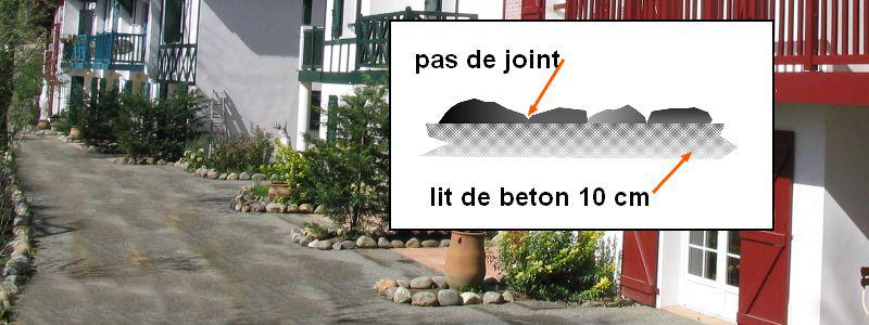 Les pierres, ici calcaires, sont juste noyées au tiers dans un lit de béton.