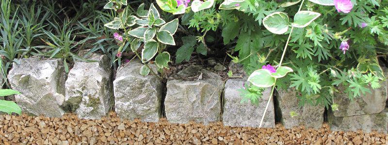 *Comme des petits murets de pierres pour retenir des massifs ou des pelouses en pente: