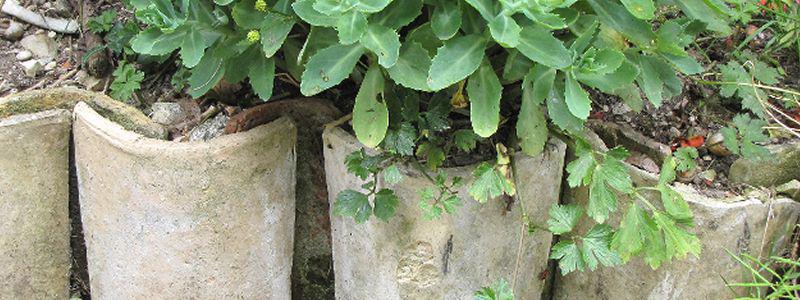 *dans cet exemple de simples tuiles « canal » enterrées à mi-hauteur pour retenir la terre des massifs