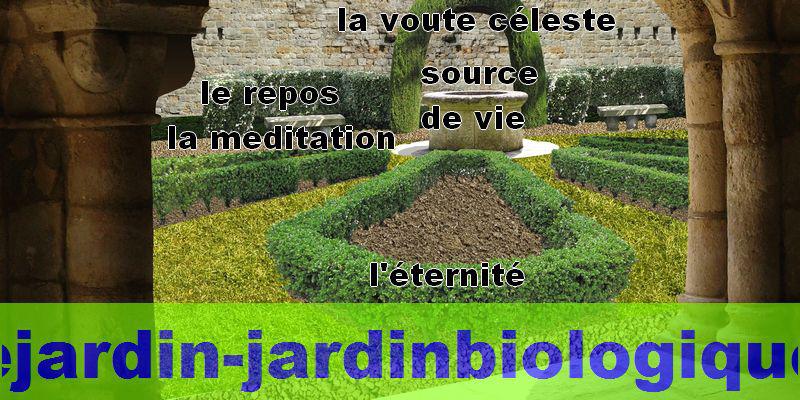 Les structures du jardin doivent rappeler des symboles. Ils sont représentés par des arbres taillés en arches représentant la voute céleste, le puits représente le symbole de l’eau jaillissante, breuvage de vie, mais aussi les ténèbres et l’enfer. L’emploi du buis symbolisant l’immortalité. Les simples étaient certainement disposés selon une interprétation personnelle du jardinier (je le suppose).