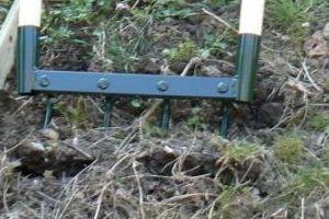 1_ enfoncez les dents de la grelinette dans le sol.