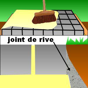 Épandez du sable sur l’ensemble de l’allée et passez un balai pour faire le pénétrer entre les pavés. Tassez méticuleusement l’ensemble en corrigeant les défauts de pose. Retirez les coffrages et faites un joint de rive de chaque côté de l’allée avec un mortier gras lissé. Une fois sec vous rabattez la terre sur les bords.