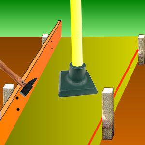 Dans le cas d’une allée piétonne, prévoir au moins 80 cm à 1 m de large pour pouvoir circuler aisément avec une brouette. Marquez-la avec un cordeau maintenu par de petits piquets. Attachez une grande attention à ce marquage, car selon la taille des pavés tracez différemment pour éviter un trop grand nombre de coupes.