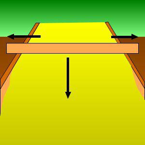 Sur le tout-venant bien compacté, étalez une couche de sable jusqu’à la hauteur des planches de coffrage. Cette couche ne dépasse pas 4 cm. En vous servant des planches de coffrage comme appui, nivelez le sable avec une règle. Rajoutez du sable s’il en manque.