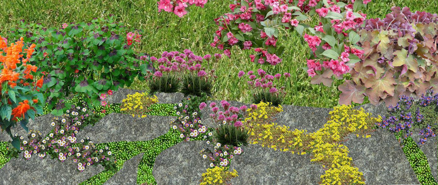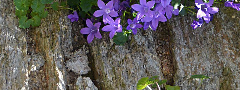 Plantez ou repiquez des fleurs rampantes de type gazon d’Espagne, sédum acre, campanule muralis, etc.