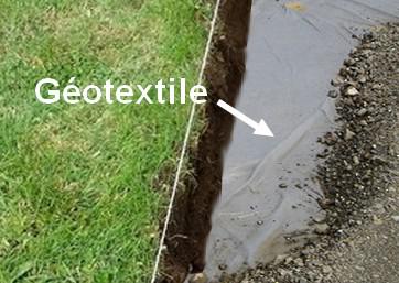 - Étalez sur la fondation de l'allée une bande de feutre non tissé (surtout pas de feuille plastique !) qui a pour effet de laisser passer l’eau, mais pas l’herbe. _1_