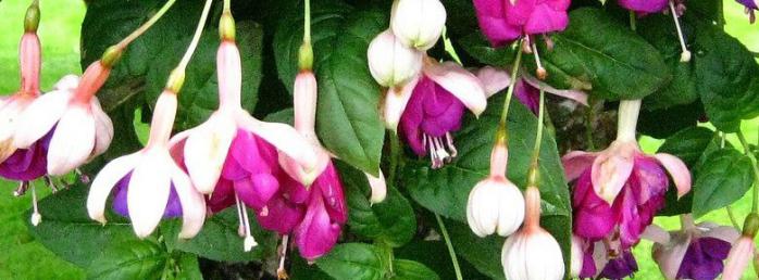Vous pouvez planter des fuchsias dans des massifs de fleurs de pleine terre, faites par exemple à l’ombre un massif d’impatiens blanches dans lequel vous incluez des fuchsias dans les tons violines et quelques pieds d’aralia pour donner du volume.