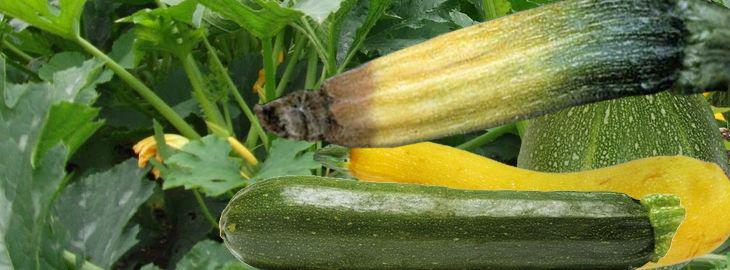 La fleur femelle des courgettes (reconnaissable à son ovaire enflé et long) commence pourtant à grossir et à s’allonger, mais sa croissance stoppe et ce qui semblait être une jeune courgette finit par pourrir et tomber.