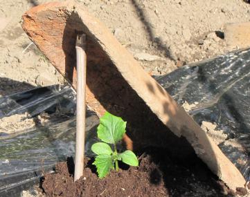 Lorsque vous repiquez les melons, les courgettes, en cas de franc soleil mettez une tuile face au sud les premiers jours le temps que les plants durcissent.