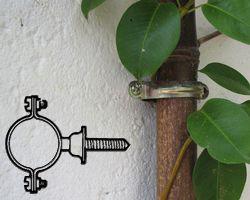 Pour fixer un tuteur au mur pour plantes grimpantes, utilisez des fixations pour tuyaux.