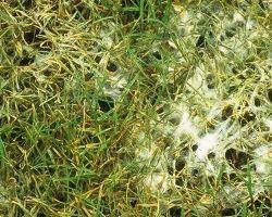 La moisissure des neiges (fusarium nivale) est une maladie cryptogamique qui survient par temps froid. Elle prend la forme d’une pourriture en zones concentriques dans les zones recouvertes de feuilles mortes et de neige, surtout si le gazon n’a pas été coupé court. Trois trucs à retenir pour l’éviter : une dernière tonte courte, ne pas laisser de feuilles mortes, éviter de chauler le gazon.
