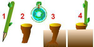 Nettoyez et pratiquez une entaille en coin, pour que le greffon de pivoine (1) que vous avez prélevé sur la pivoine arbustive coïncide parfaitement (4)