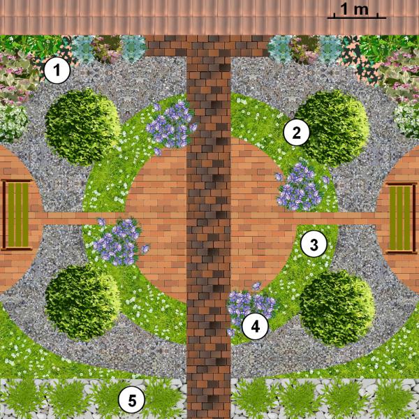 Végétaux employés sur cet exemple de jardin d’accueil d’une maison