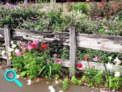 Dans les petits jardins anglais, pas de clôtures lourdes, mais simplement des clôtures de bois légères ou quelques piquets et du fil de fer comme dans le modèle proposé.