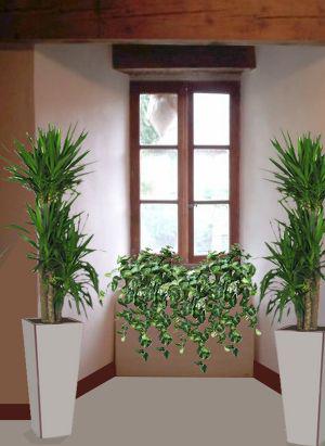 Le positionnement asymétrique des plantes capte le regard vers celles-ci.