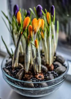 Les Crocus se prêtent également bien au forçage en pots, pour égayer l’intérieur d’une maison en hiver.