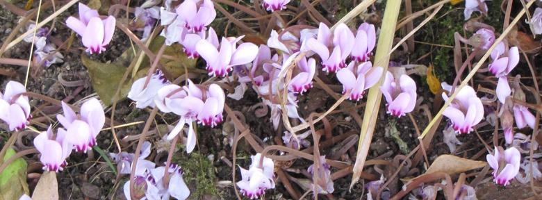 Le cyclamen de Naples se naturalise rapidement et s’étendent pour former de grands tapis spectaculaires tant que dure la floraison.
