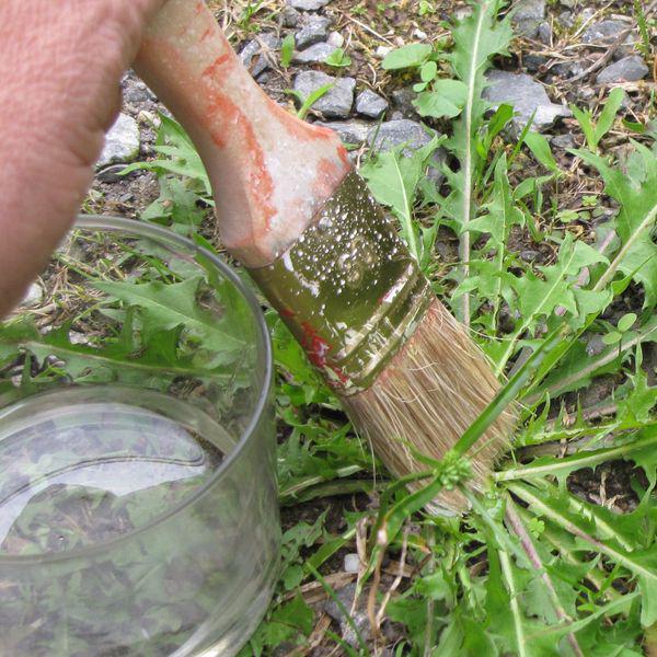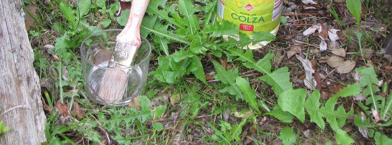 Sur les rosettes d’herbes vivaces indésirables, appliquez au pinceau une généreuse couche d’huile de table.