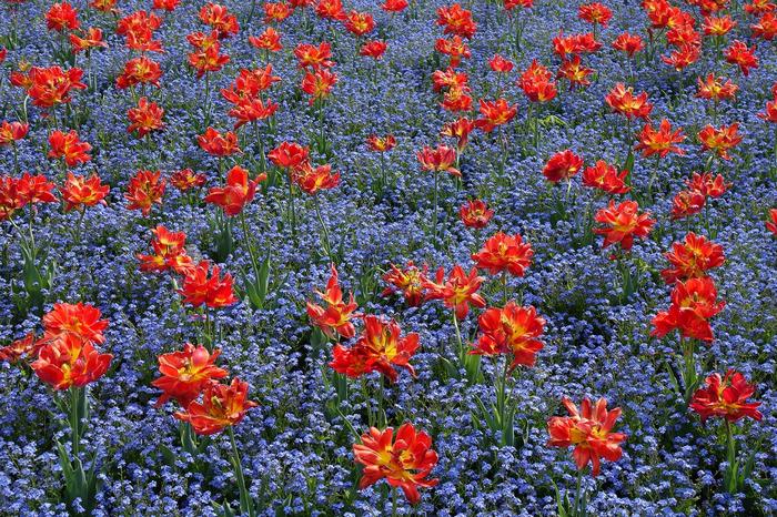 Une telle étendue de fleurs se réalise dans les grands parcs des collectivités, mais vous pouvez tout à fait réaliser ce modèle à l’échelle de votre jardin. La réalisation est simple et le rendu splendide.