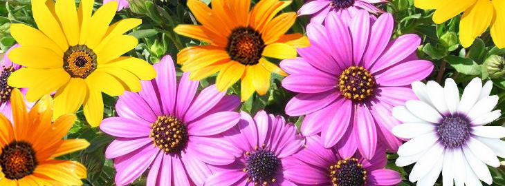 Il existe quelques variétés. Exemple : Dimorphotéca" Spring flash" fleurs jaunes lumineux, Dimorphotéca" African Moon"Blanche, Dimorphotéca" jucunda " fleurs mauves.