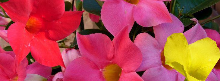 Le dipladénia (mandevilla) avec ses longues lianes fleurit tout l’été. Il existe de nombreuses variétés allant du blanc au rouge en passant par le rose et le jaune. Suivez nos conseils de culture d’entretien et de choix de variétés