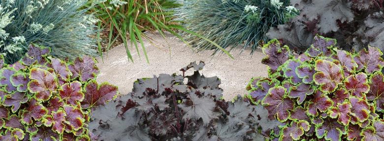Ici le choix s’est porté sur un calamagrostis avec quelques fétuques bleues et des heuchères en variétés.