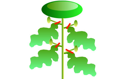 Le pincement des boutons indésirables (des pousses qui partent de l’aisselle des feuilles) concentre la sève de la plante sur le bouton terminal de la tige. Cela donnera des fleurs plus grosses et régulières.