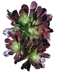 Plante non rustique à feuilles charnues, glauques, pruineuses, disposées en rosette comme un artichaut pouvant atteindre 30 cm de diamètre.
