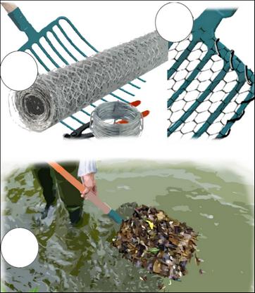 Une solide épuisette pour les bassins ou une fourche pour les mares ou les bassins en béton.