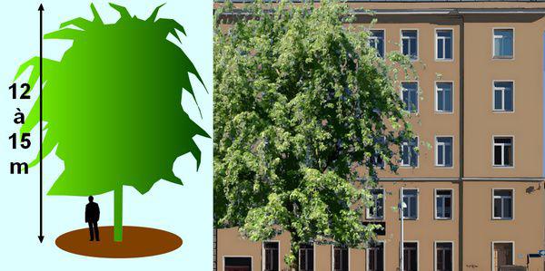 Hauteur 10 à 15 m. Arbre élégant par son port semi-pleureur, les rameaux secondaires retombant gracieusement, et par ses feuilles à revers argenté et profondément découpées. Plus exigeant que les autres, il préfère les sols frais et profonds. À planter en isolé, sachant qu’il faut lui réserver assez d’espace.