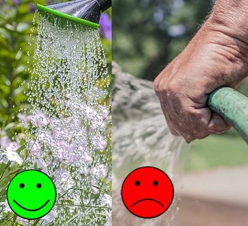 Arrosez avec une pomme fine le soir et jamais comme on le voit très souvent avec le pouce au bout du tuyau.