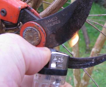 Les outils de taille sont les principaux vecteurs de maladies. Désinfectez-les lorsque vous passez d’un arbre à l’autre par exemple.