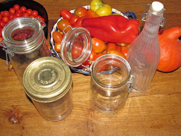 Les bouteilles pour conserves de coulis de légumes ou petits pois :