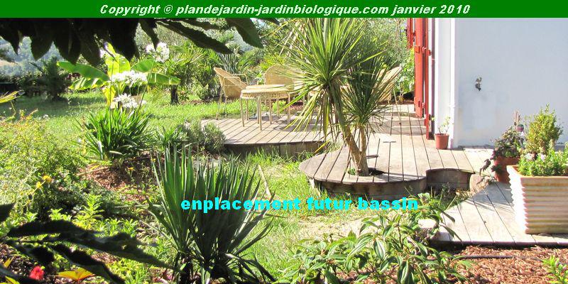 Pour la pose de cette terrasse, il a été employé la méthode à mes yeux la plus simple : celle des morceaux de chevron posés debout sur petite chape de béton. C’est aussi la plus économique. Les lattes de bois sont posées avec un dépassement de 10 cm et recoupées selon le plan à la scie sauteuse et poncée pour donner un fini parfait.