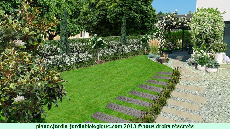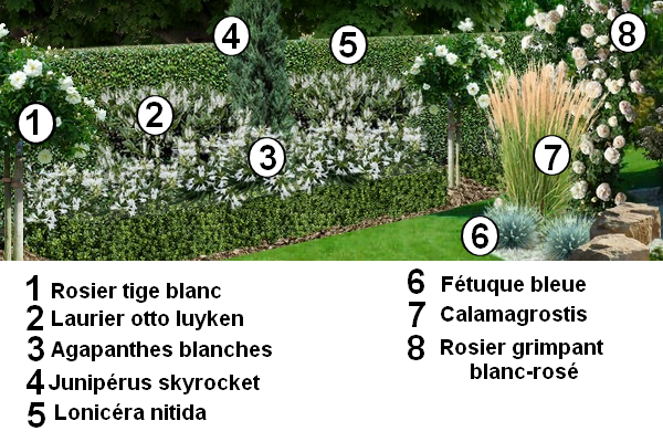 Le jardin blanc symbolise la pureté, la couleur blanche donne une sensation d’espace. Inspirez-vous de ce modèle et du plan pour créer un jardin à dominante blanche.