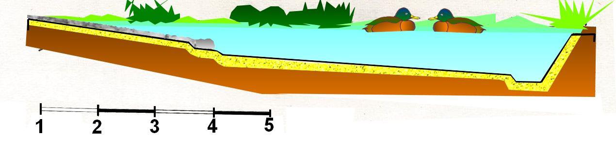Le décaissement se fera à plusieurs niveaux et en pente douce pour les bords pour permettre aux plantes de différentes espèces de coloniser les berges.