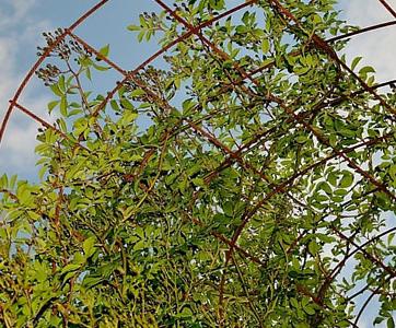 Vous trouverez dans les jardineries des arceaux prêts à être montés. S’ils ne sont pas très fiables dans la durée, ils permettront de guider les rameaux au départ pour former la voûte. Au bout de quelques années selon la plante employée, les rameaux n’auront plus besoin de guides pour garder la forme en arc.