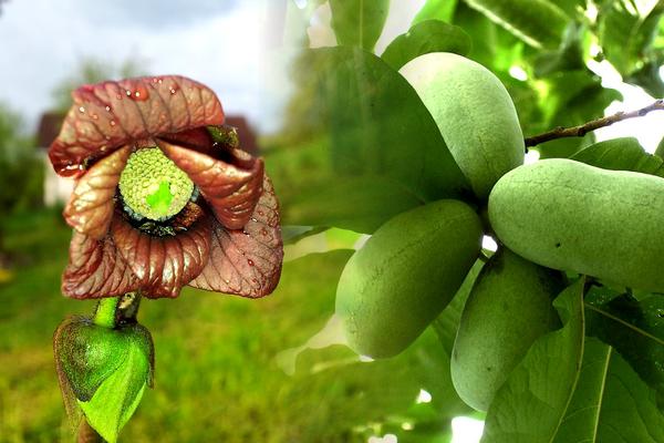 La couleur des fruits de asimina triloba variera à maturité selon les variétés. La peau de l’asimine sera encore verte chez l’asiminier « Sunflower » par contre elle devra être jaunâtre chez l’asiminier « Wilson ».
